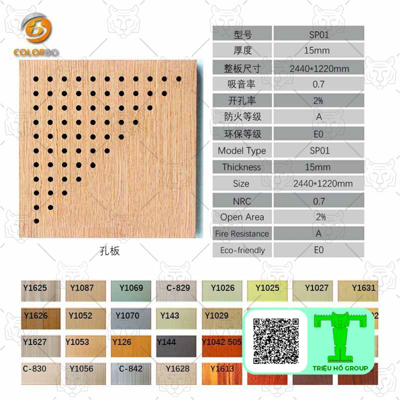 1 | Tấm Polyester Fiber tiêu âm màu phổ thông không họa tiết Kt: (W1220 x L2440)mm | 790.500 |