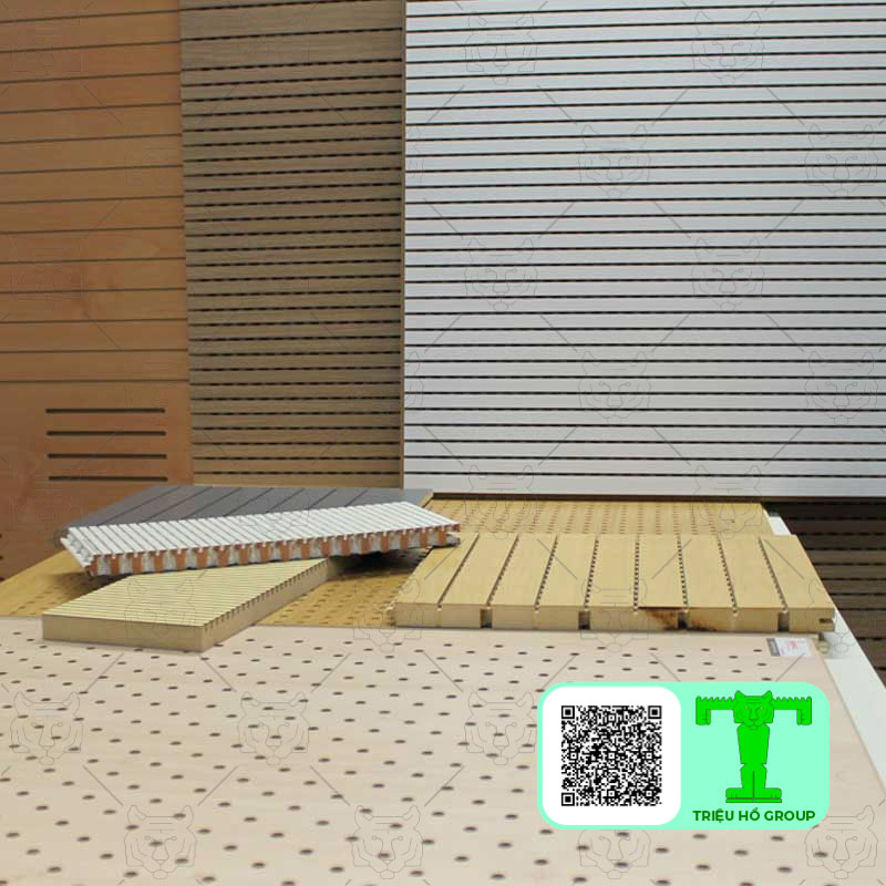 5 | Ván gỗ tiêu âm xẻ rãnh hoặc đục lỗ lõi MDF chống ẩm , hai mặt phủ Melamin. Dày 8mm | 396.800 |